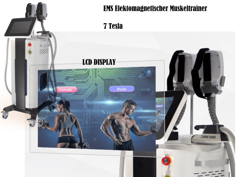 EMS Muskeltrainer funktioniert mit Hilfe einer neuartigen 7-Tesla-Technologie, elektromagnetischen Muskel-stimulation.