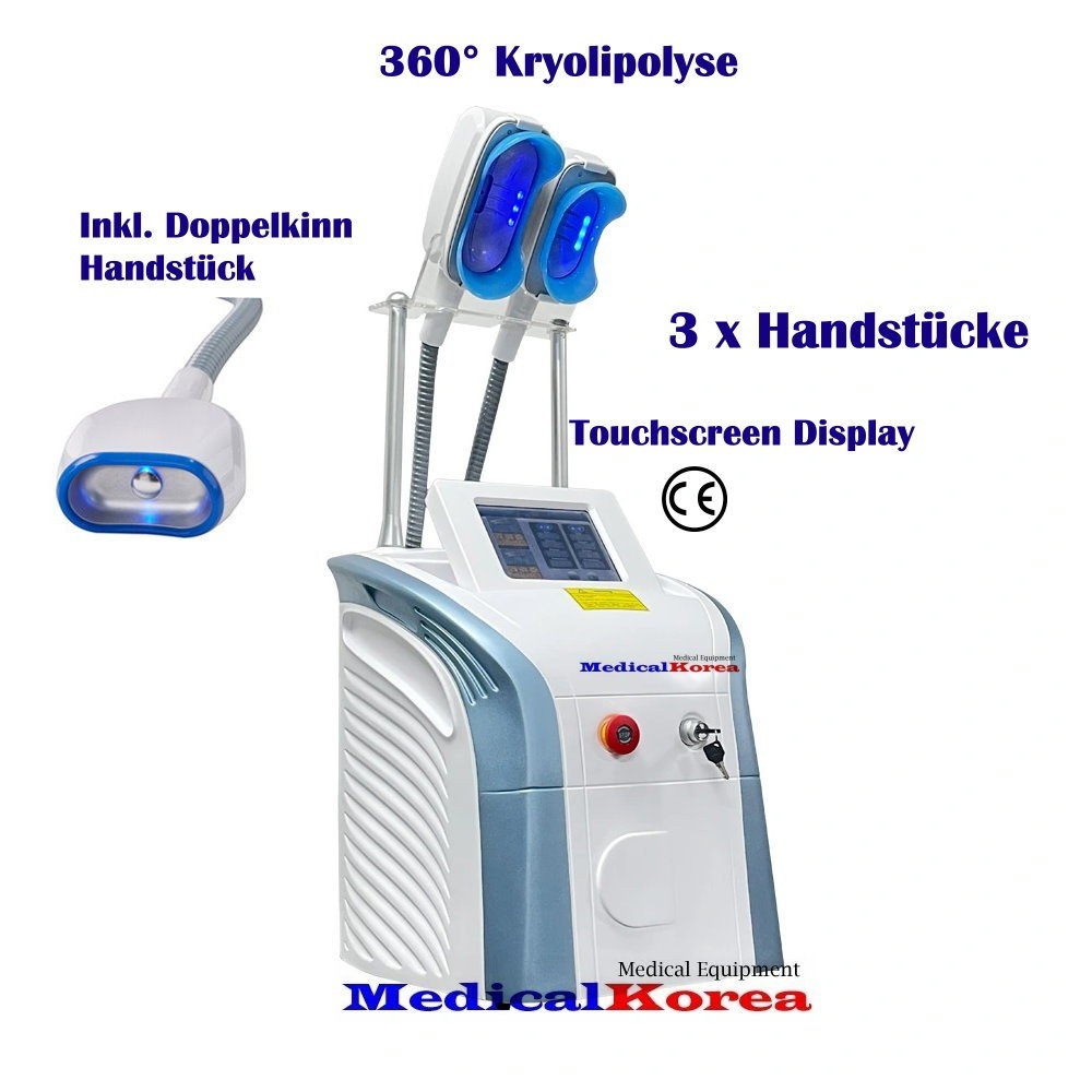 Kryolipolyse Gerät 360° mit 3 x Cooling Handstück,inkl.Doppelkinn Aufsatz