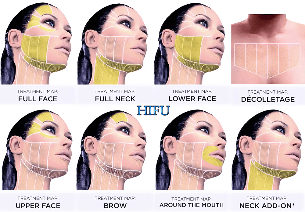 - HIFU-Technologie (High-Intensity Focused Ultrasound) : Verwendet hochintensive Ultraschallwellen, um tief in die Hautschichten einzudringen und die Kollagen- und Elastinproduktion für einen Lifting- und Straffungseffekt zu stimulieren.