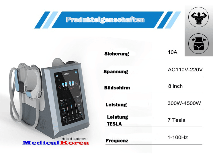 EMS Tesla 7 ist die neuste Entwicklung im Bereich der elektromagnetischen Muskelstimulation (Körperformung, Muskelaufbau). Mit 14 Tesla gilt es als das stärkste Gerät in diesem Bereich. Schon mit nur 6 Behandlungen über je 30 Minuten in einem Zeitraum von 2-3 Wochen lassen sich eine erstaunliche Muskelzunahme sowie eine starke Straffung und Fettabbau im Anwendungsbereich erreichen.