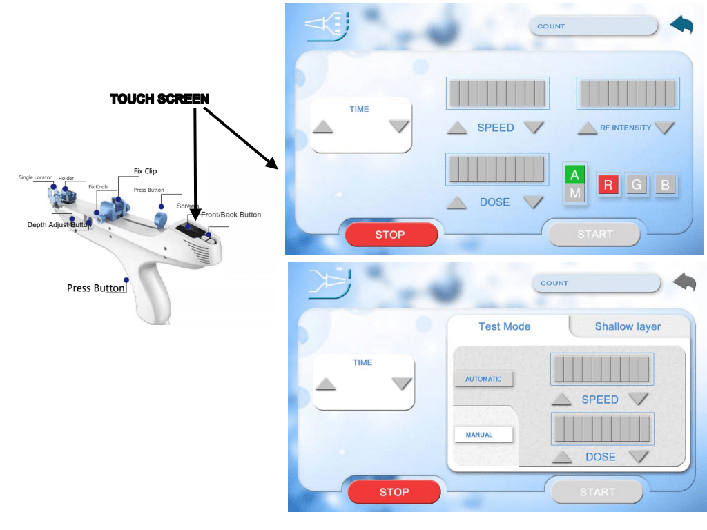 - Einstellung 1: Einstellbare Durchflussrate en) und Injektionsgeschwindigkeit für sanfte Hautbehandlungen.