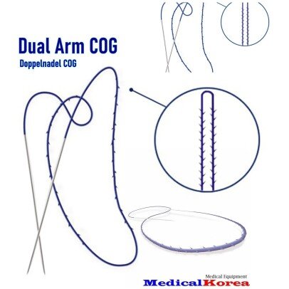 - Der 12D Cog-Faden kann das Hautgewebe in alle Richtungen fixieren und ist dank der Verwendung von einem stabilen Faden mit 360° Erhebungen sicher in der Anwendung.