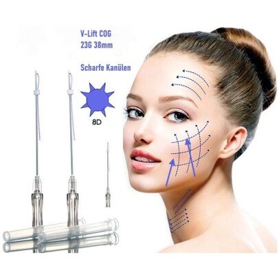 - Der 8D Cog-Faden kann das Hautgewebe in alle Richtungen fixieren und ist dank der Verwendung von einem stabilen Faden mit 360° Erhebungen sicher in der Anwendung.